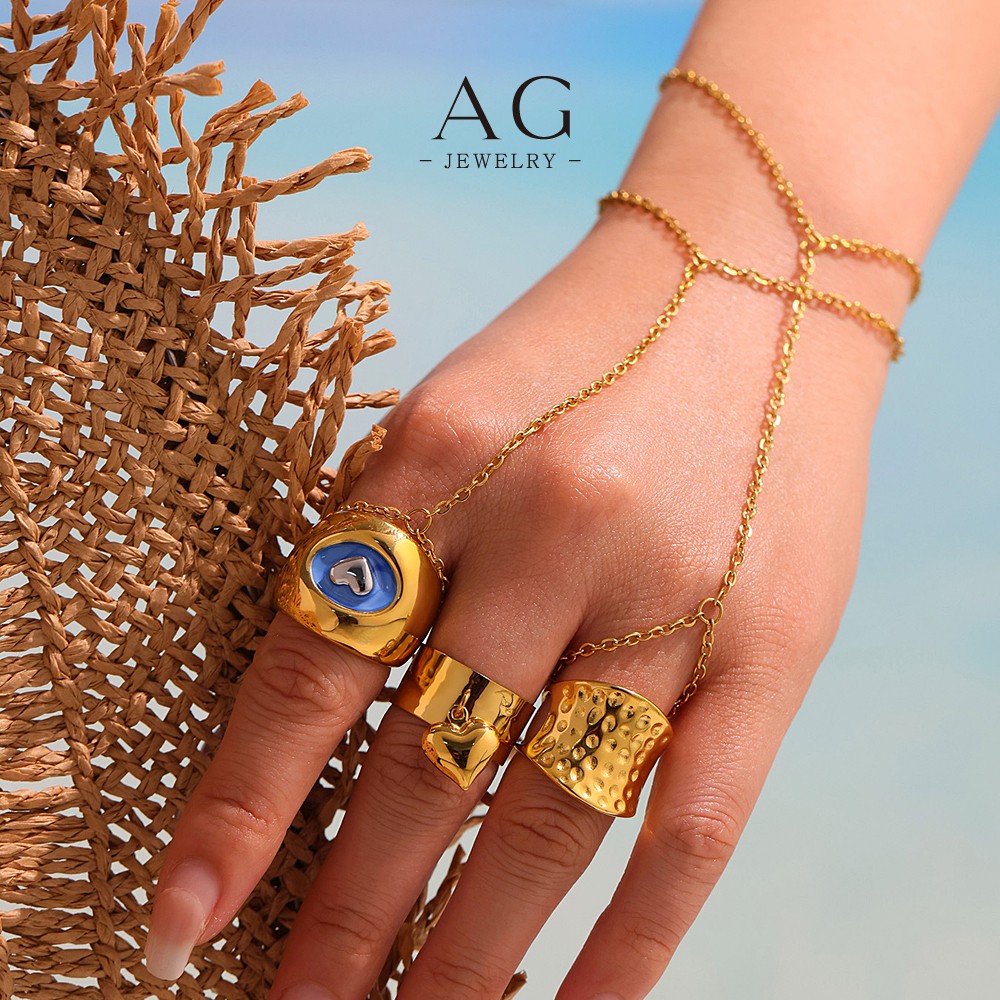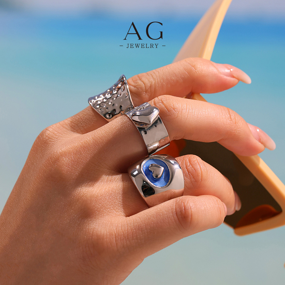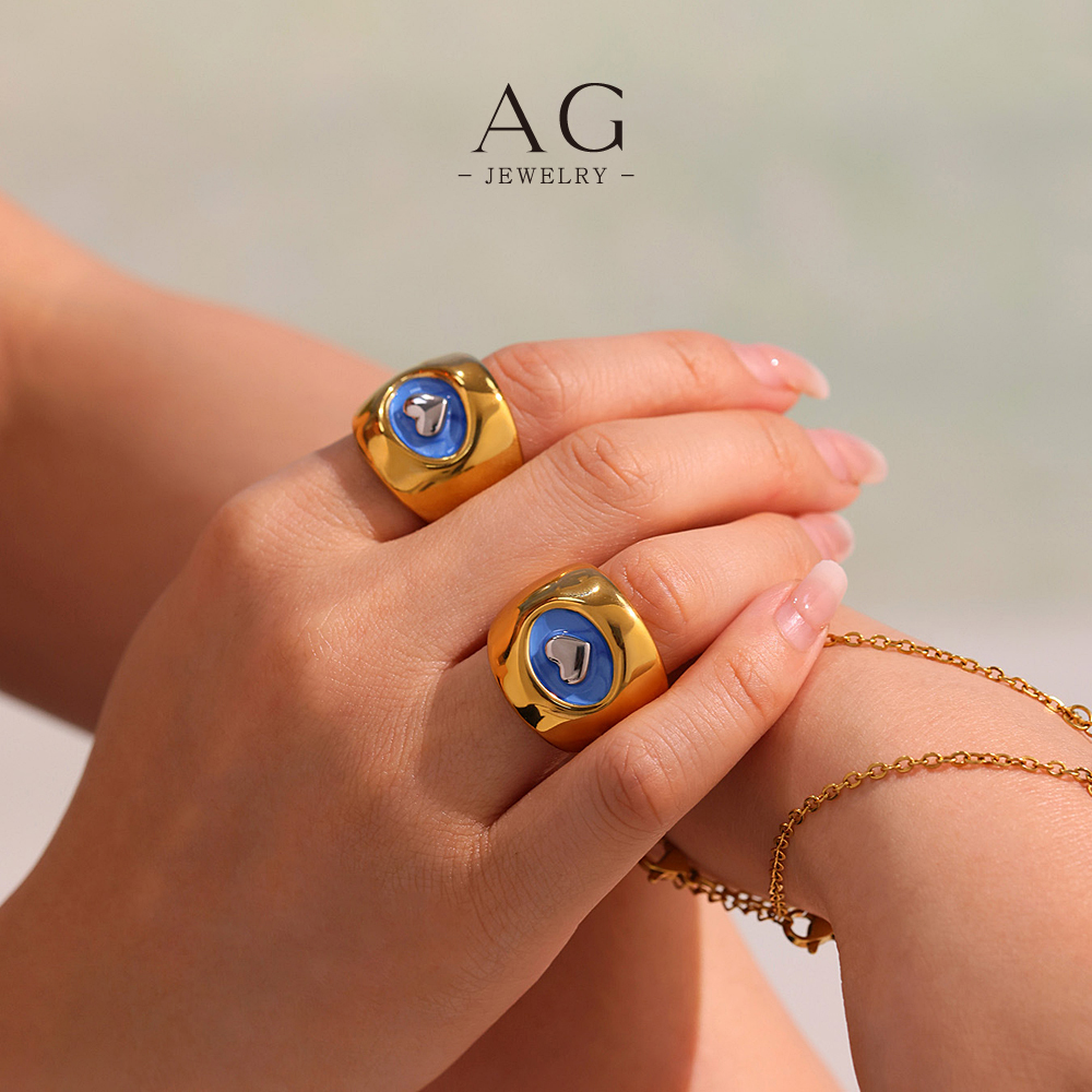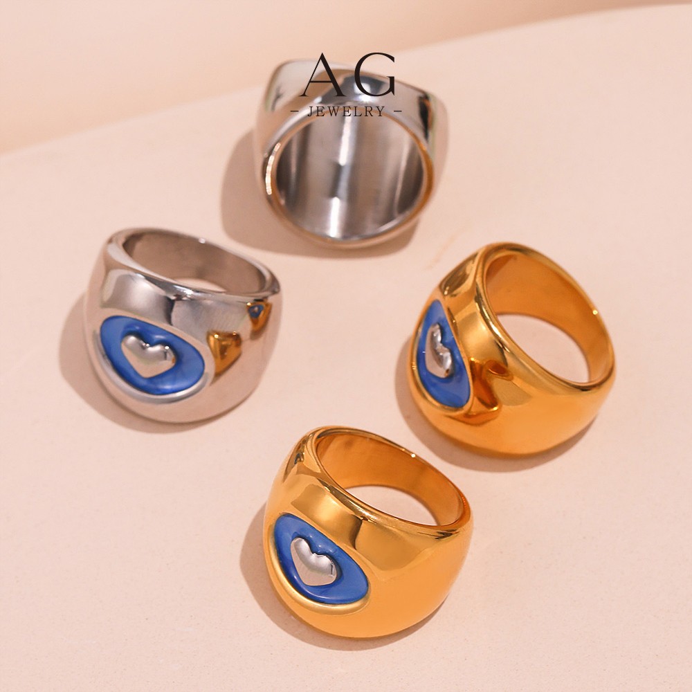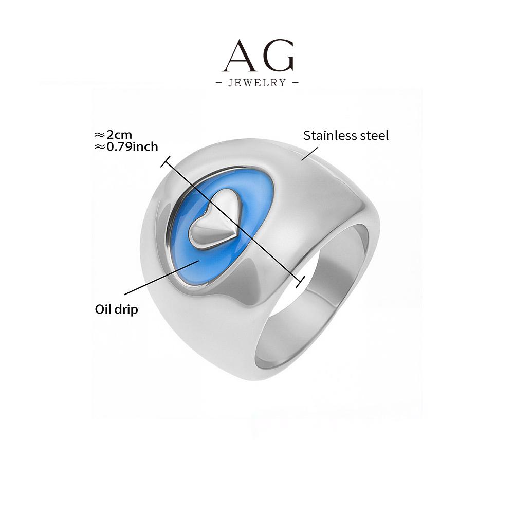 AG Stainless Steel Heart Blue Enamel Ring Colorful Jewelry Custom Order Manufacturer AGA742