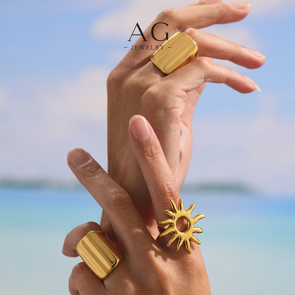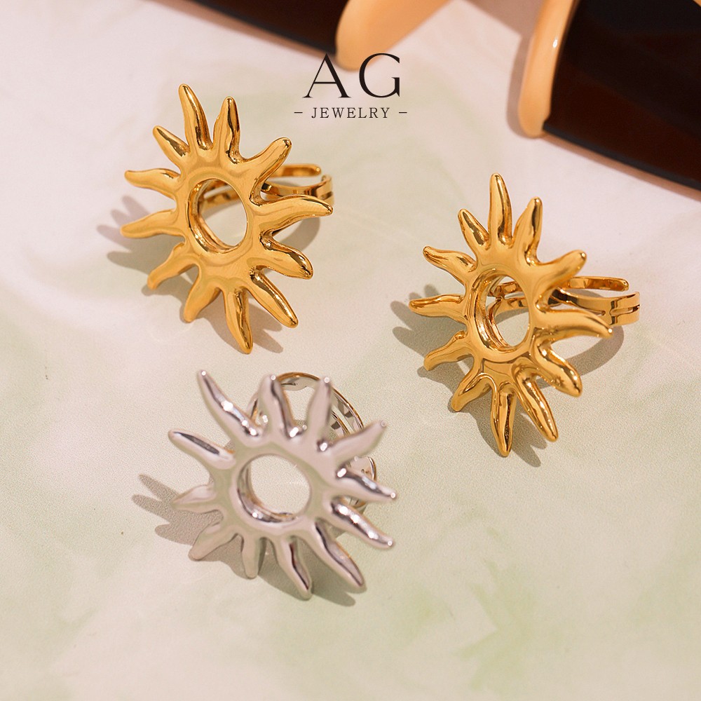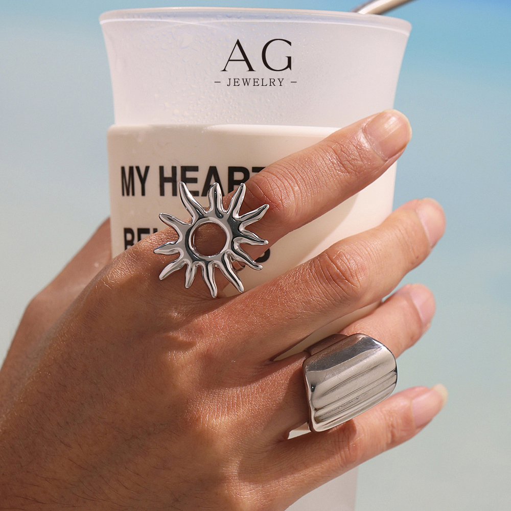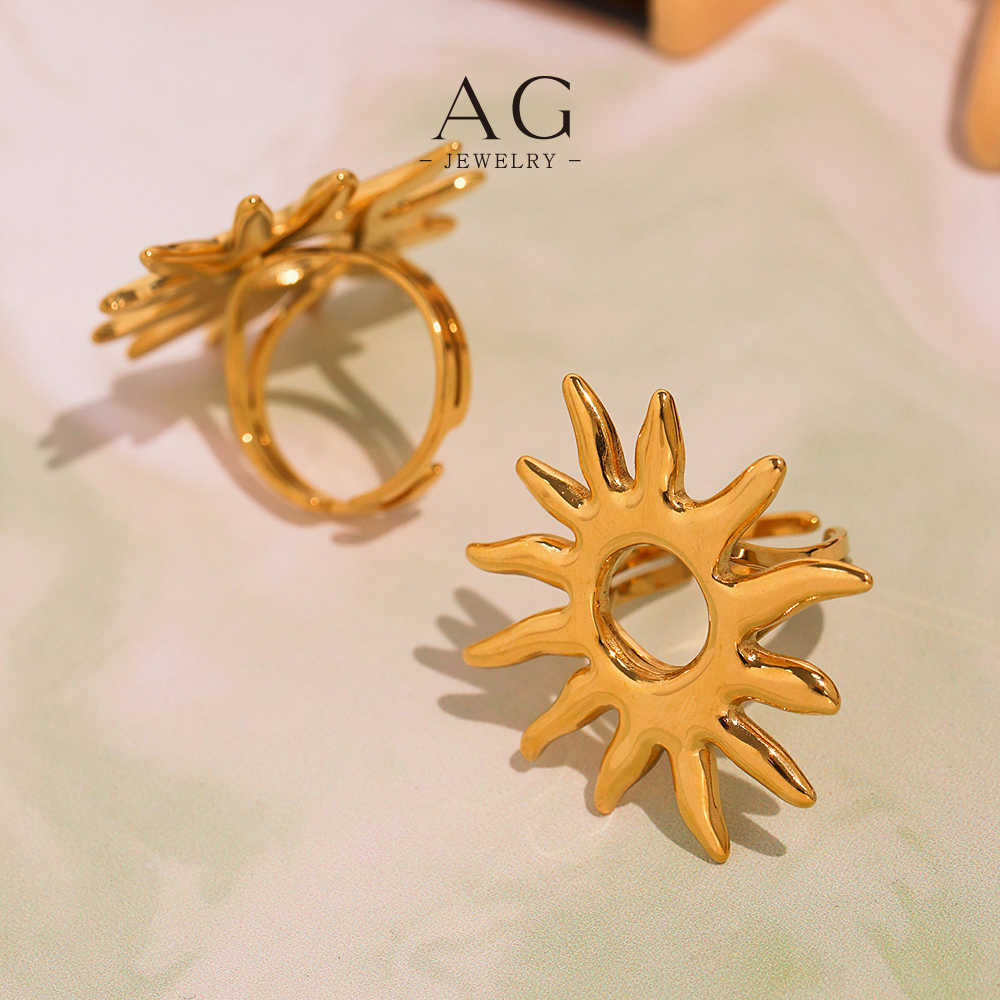 AG Stainless Steel Large Sunflower Ring Bold Floral Jewelry Factory Direct Wholesale AGA734