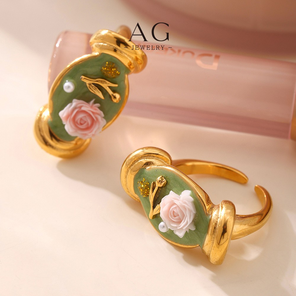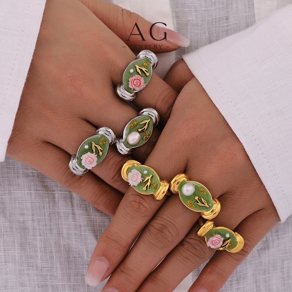 AG Stainless Steel Rose Flower Ring Romantic Jewelry Bulk Order Custom Design AGA092