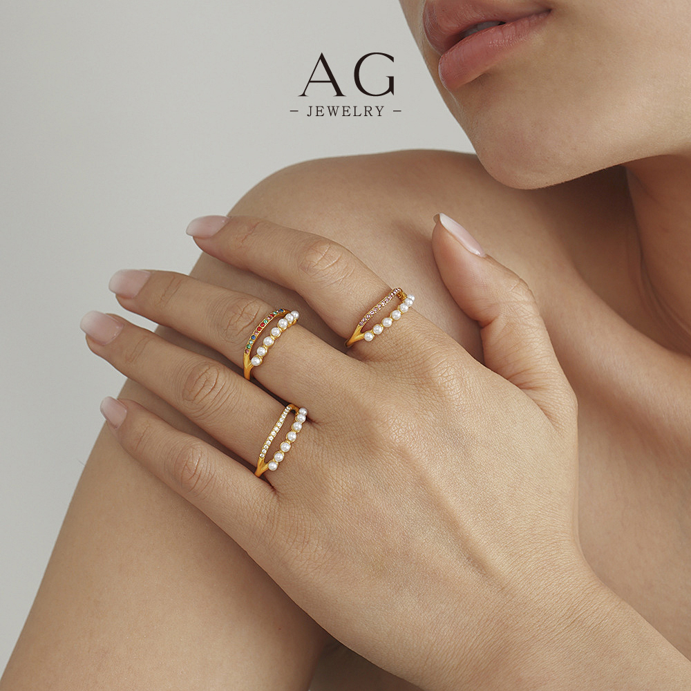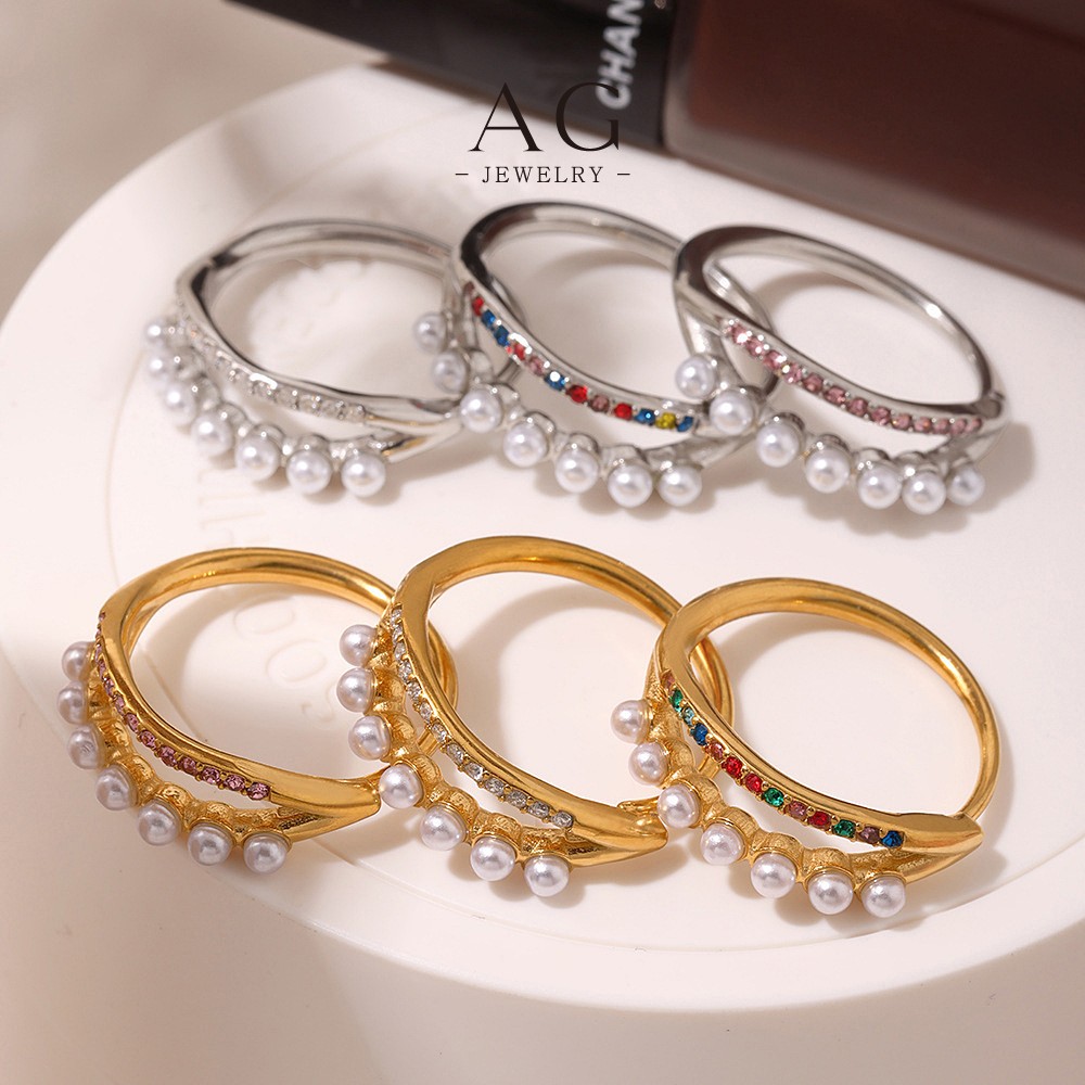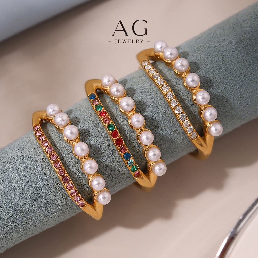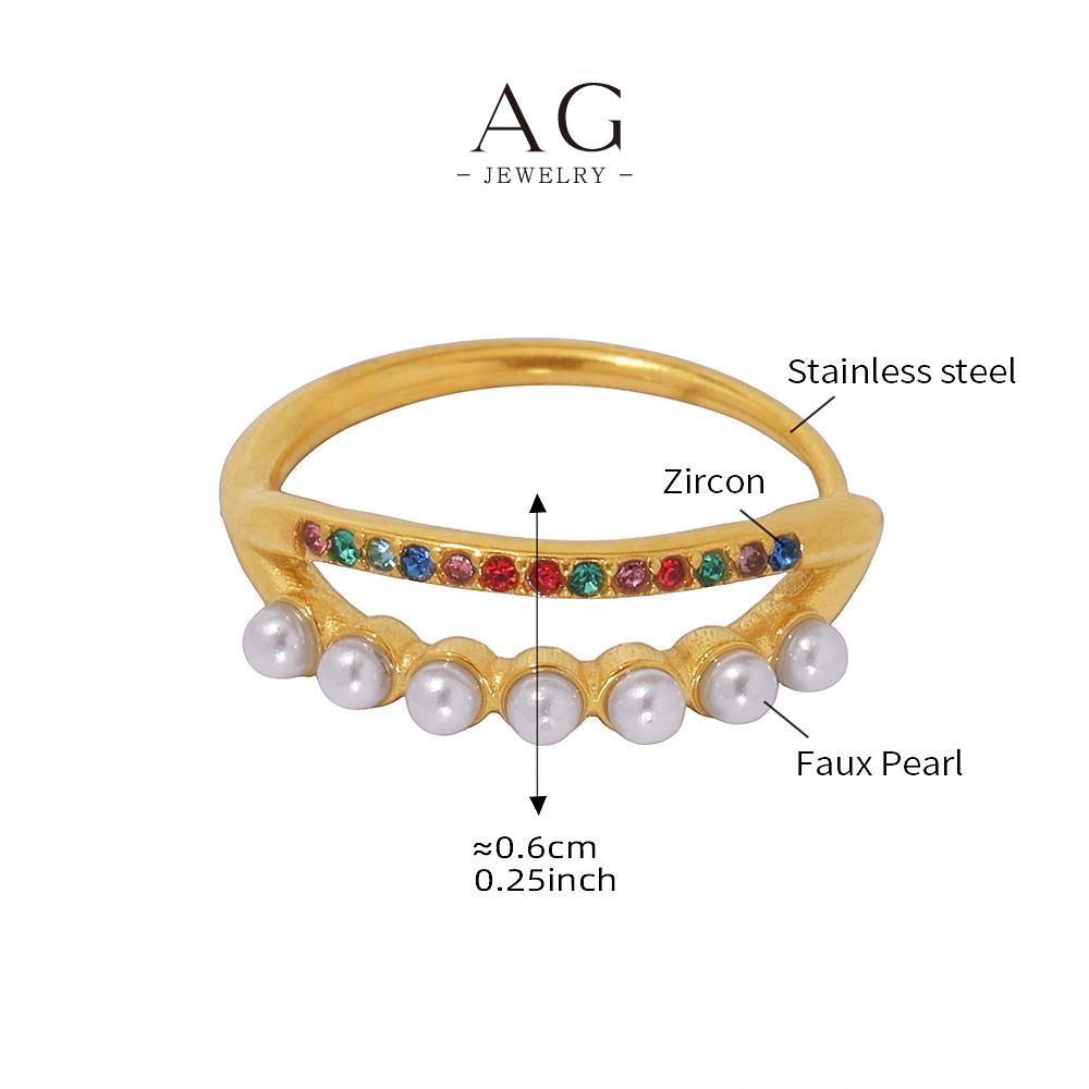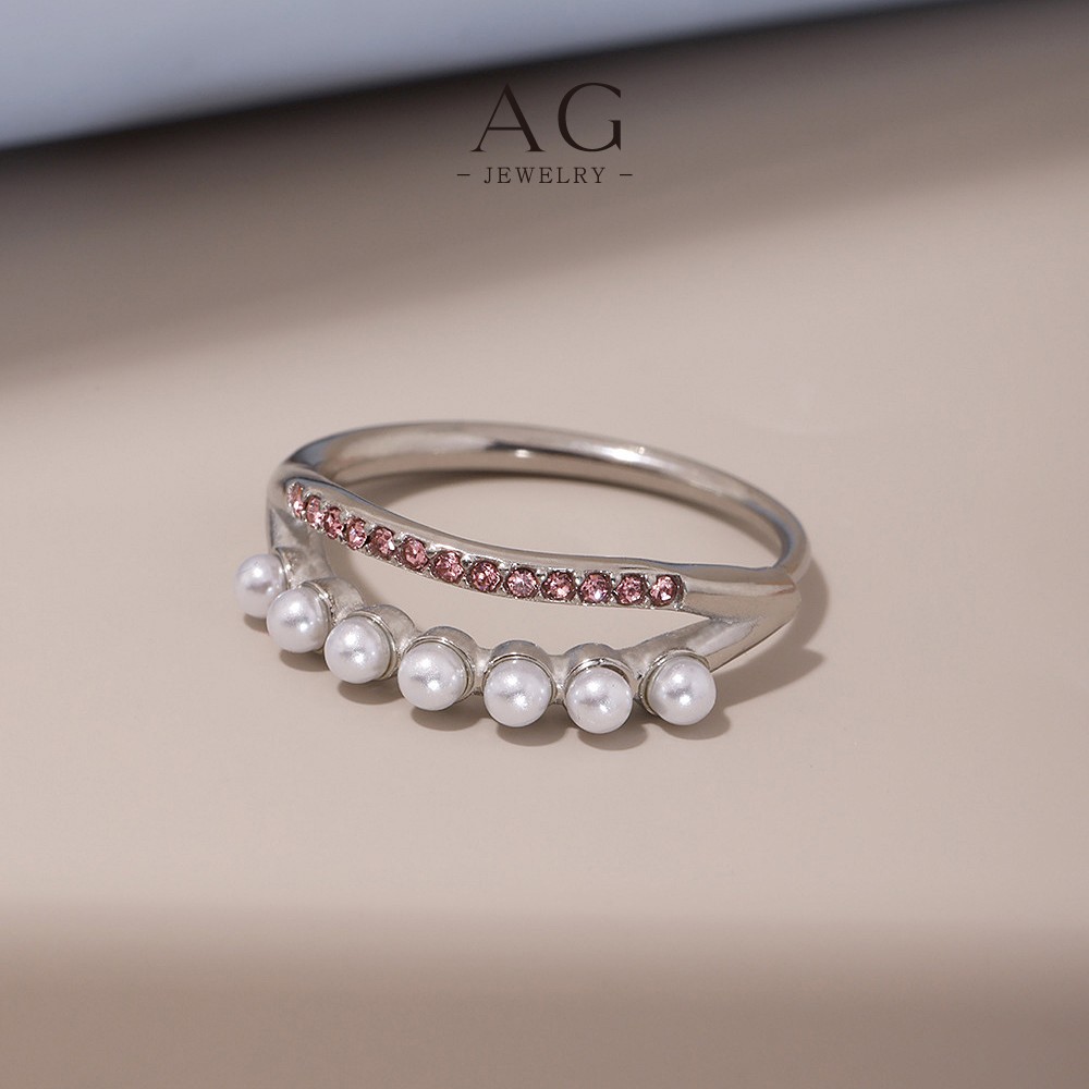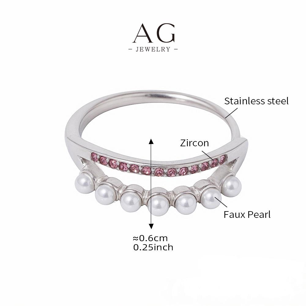 AG Stainless Steel Pearl Zirconia Ring Bridal Wedding Jewelry AGA054