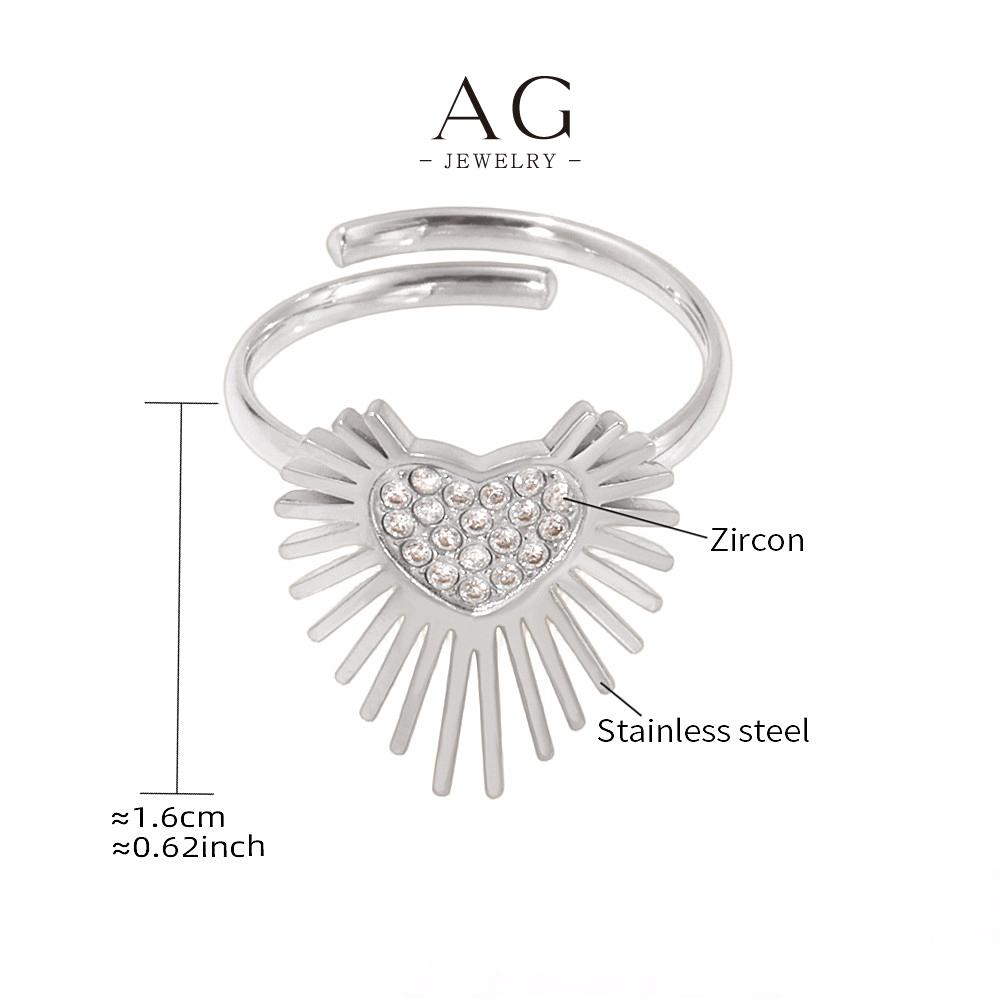 AG Stainless Steel Heart Fan Ring Unique Design Jewelry Custom Manufacturer Small MOQ AGA038