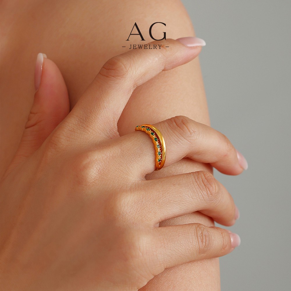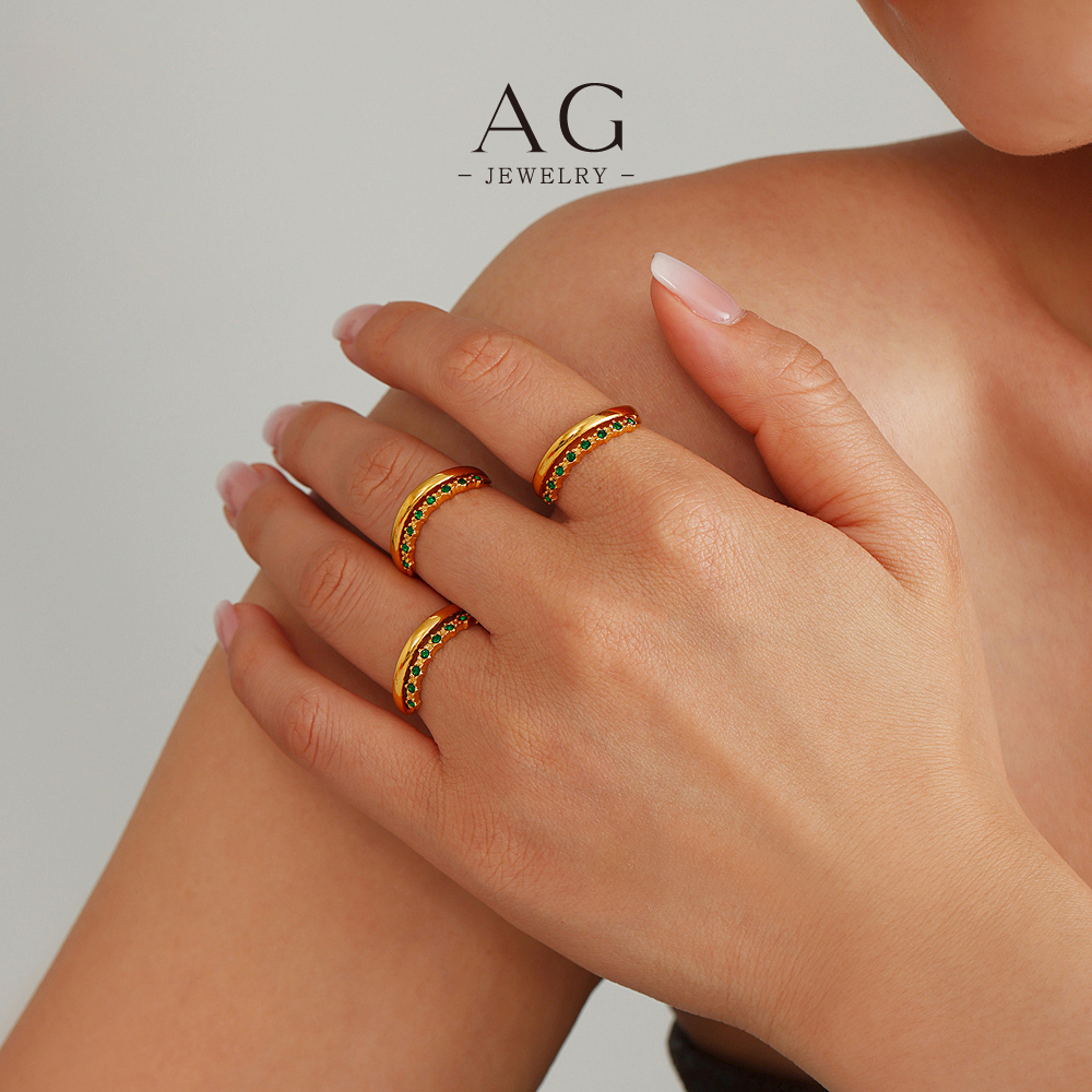 AG Stainless Steel Green Zirconia Ring Colored Gemstone Jewelry Custom Order Manufacturer AGA013