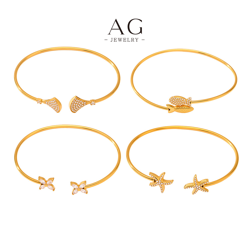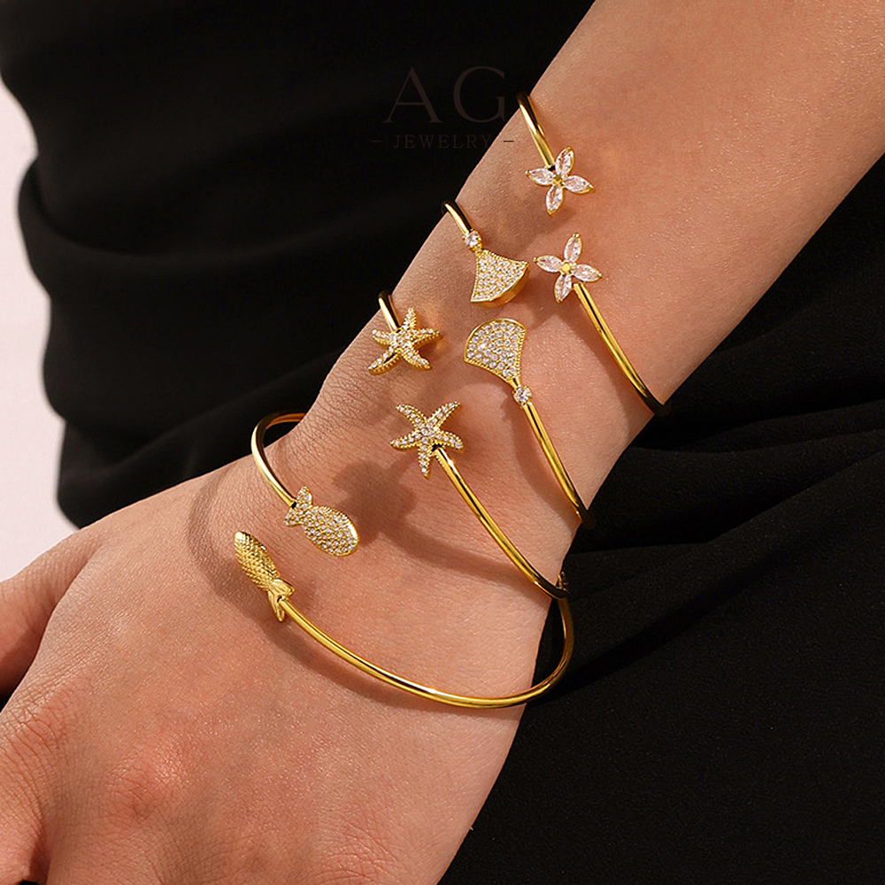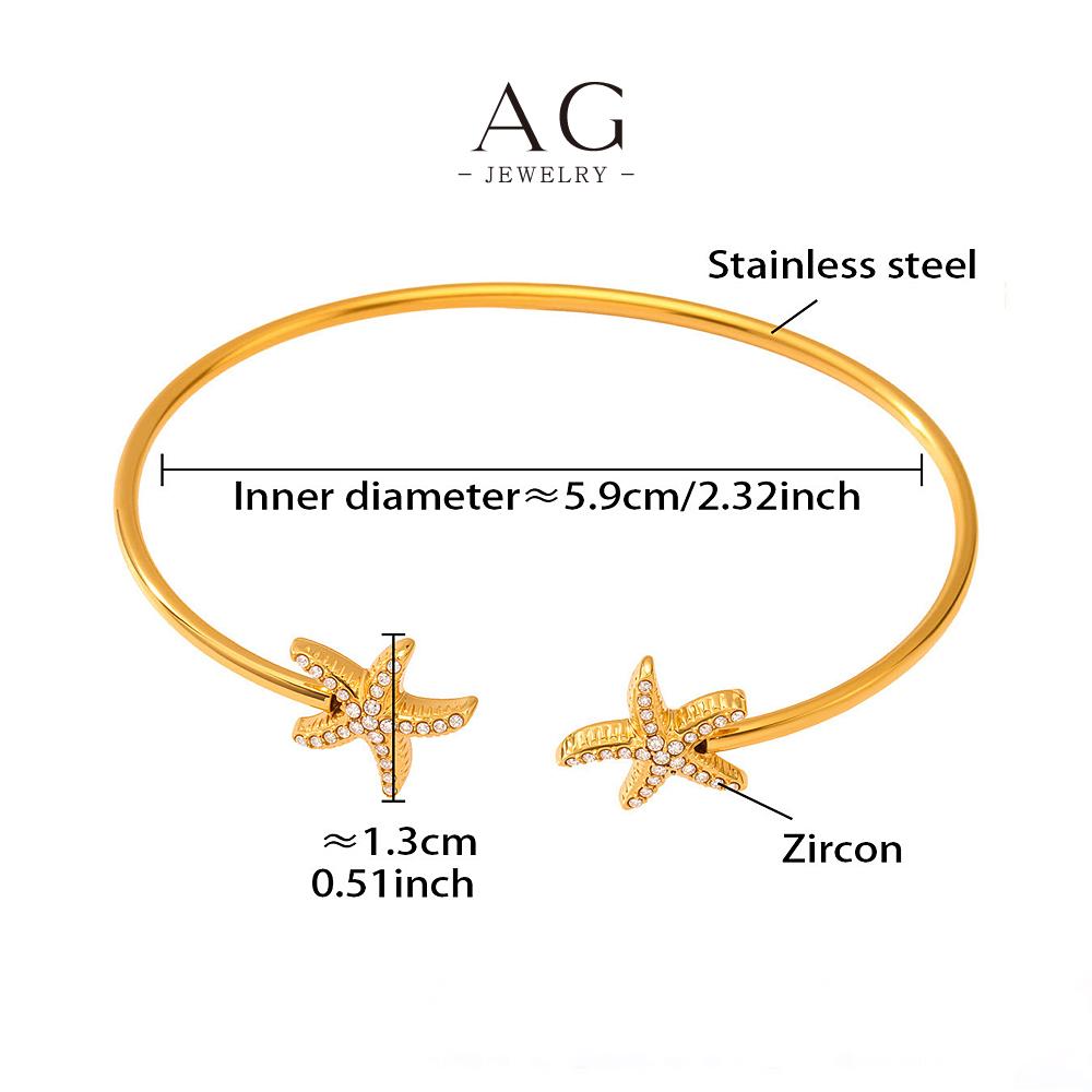 AG Stainless Steel Starfish Charm Bangle Ocean Theme Beach Vacation Jewelry Gift AGZ442