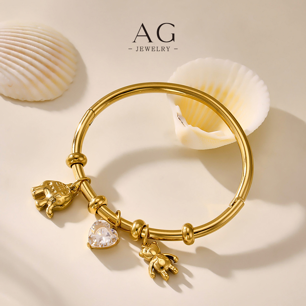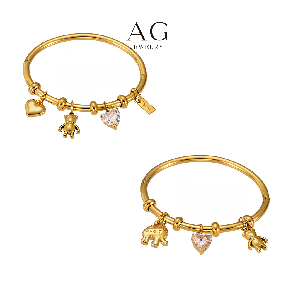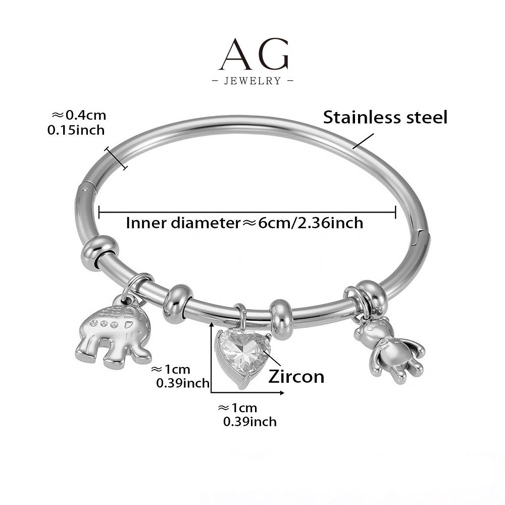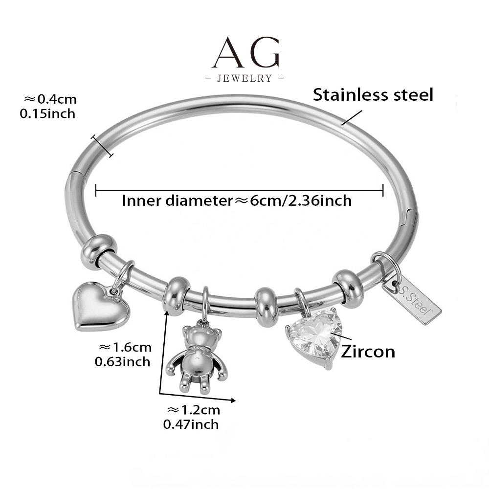 AG Stainless Steel Heart Bear Multi Charm Bracelet Playful Elegant Jewelry AGZ360