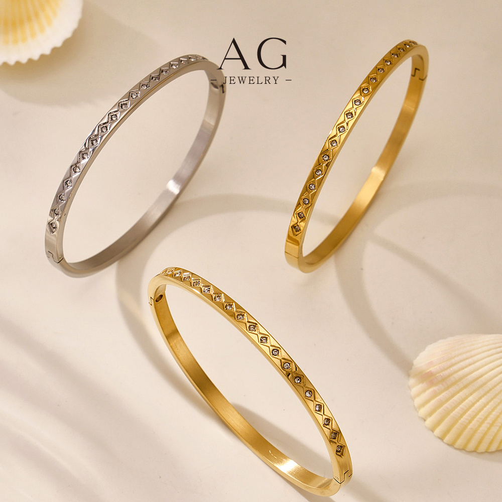 AG Stainless Steel Polished Bangle Stackable Bracelet Set Minimalist Jewelry AGZ263