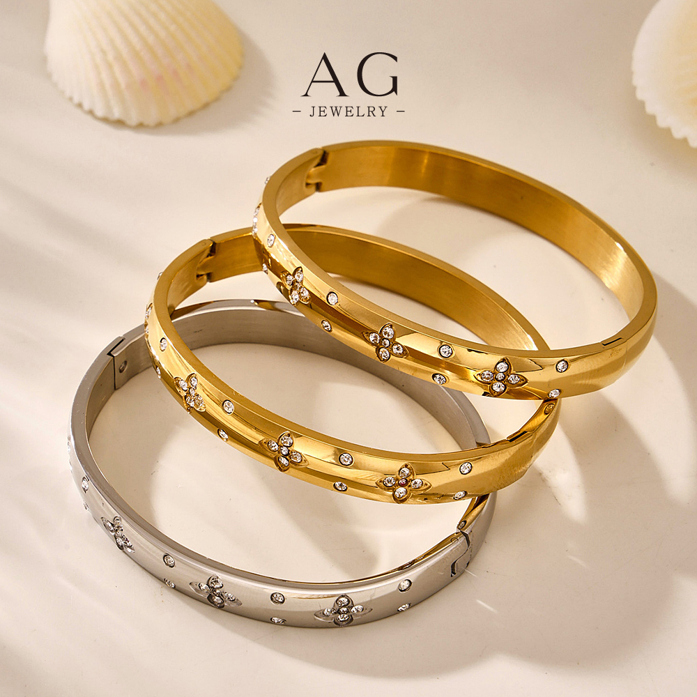 AG Stainless Steel Diamond Wave Bangle Ocean Inspired Design AGZ136