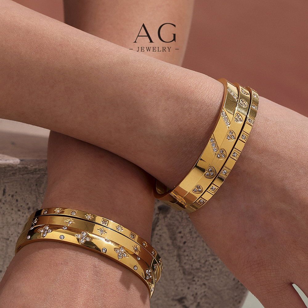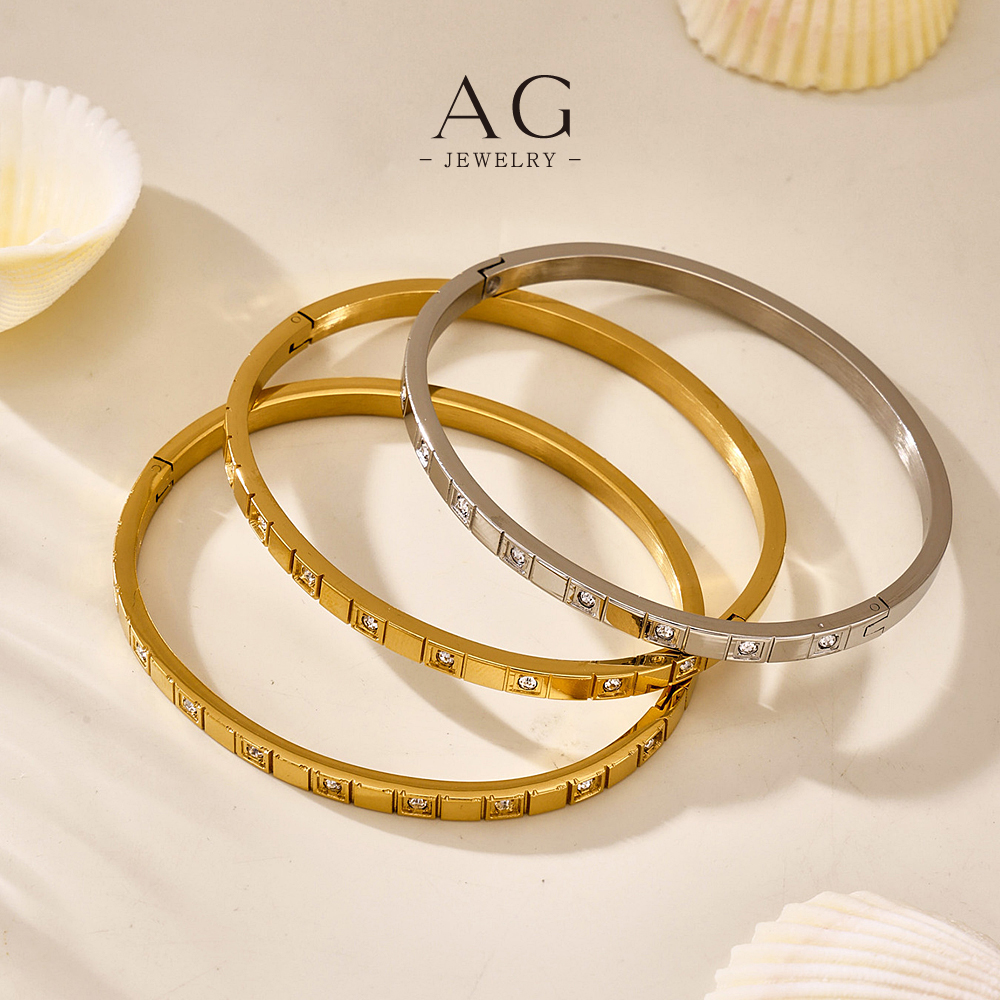 AG Stainless Steel Diamond Cut Bangle Modern Lightweight Jewelry AGZ091