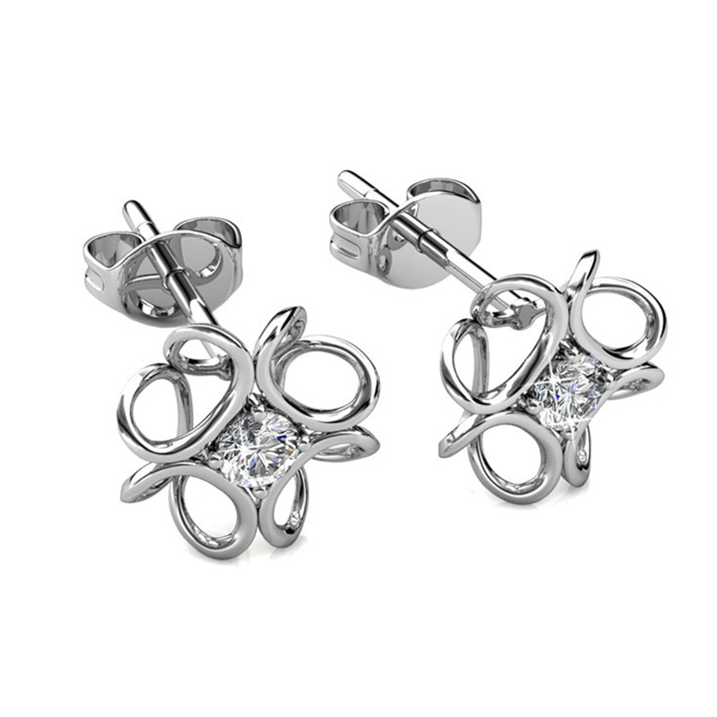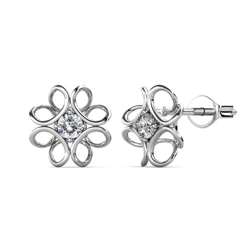 Small MOQ Jewelry Gold Plated Fashion Huggies Earring For Women Vintage Fashion Flower Crystal Earrings